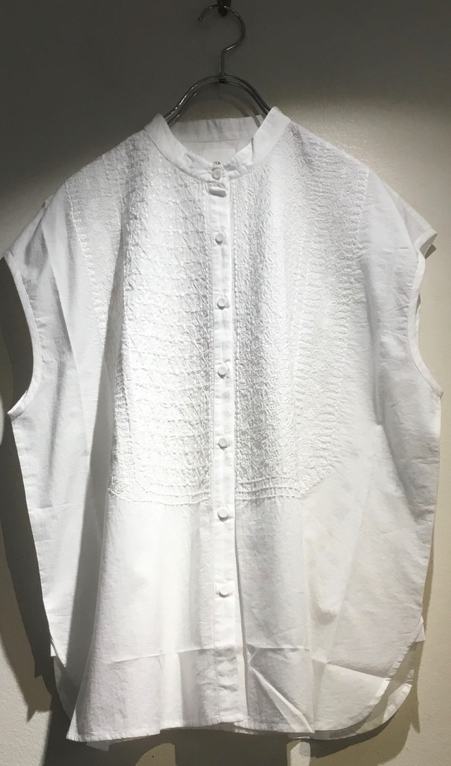 maison de soilのフレンチスリーブ バンドカラー刺繍シャツが入荷しました さりげない華やかさを放つ手振りの刺繍はコンピューターミシンではなく 人の手を動かしながら 絵を描くように表現され 職人さんの技術の高さと手仕事による温もりを感じられる贅沢な一品 又 左右で異なる刺繍を表現し maison de soilらしさが詰め込まれた繊細なデザインが魅力です ジャケットやコートの胸元にのぞく刺繍が女性らしさを感じるシャツになりました ※手洗い可能です サイズ① 身幅 60㎝ 着丈 63㎝ サイズ② 身幅 60㎝ 着丈 71㎝ コットン100% インド製