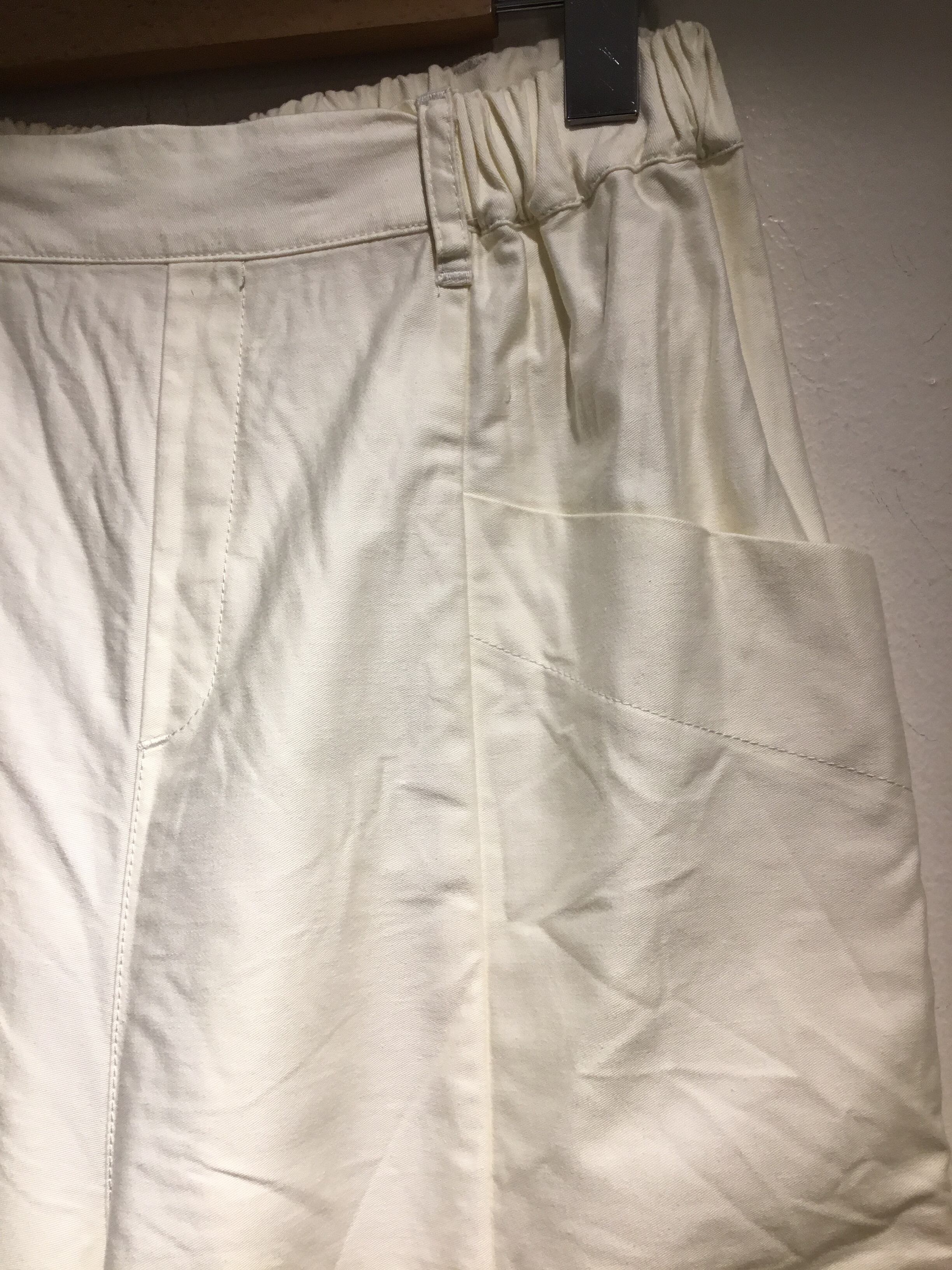 レイトリーから 滑らかな光沢が綺麗めな着こなしにもカジュアルにも 幅広く使えるウエストゴムのパンツが入荷しました。