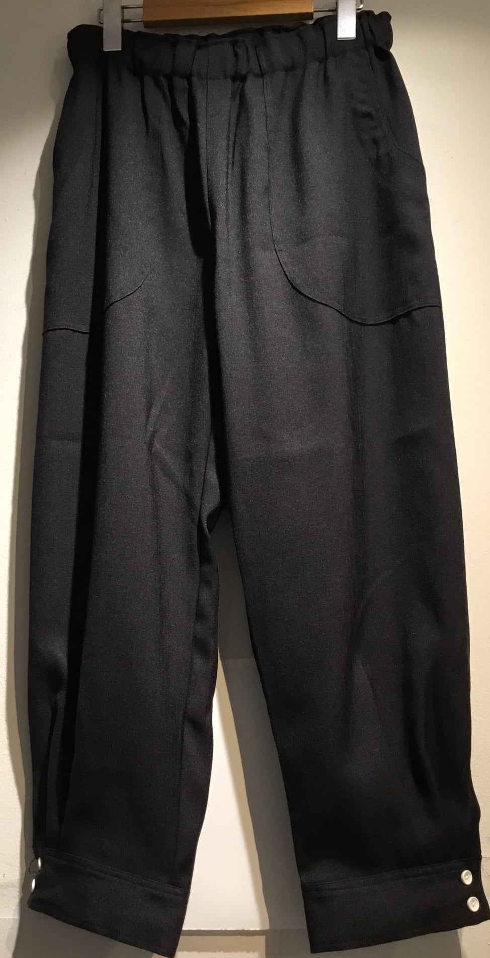 腰回りは適度なボリュームで裾にタックを入れたベルト仕様のバルーンシルエットのイージーパンツです。