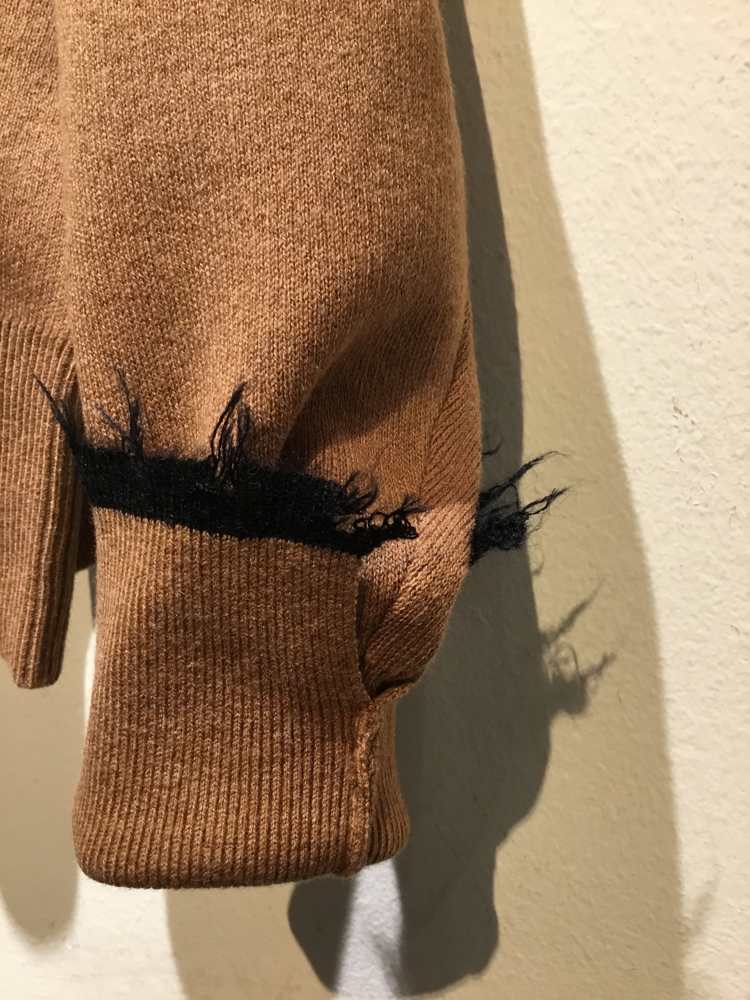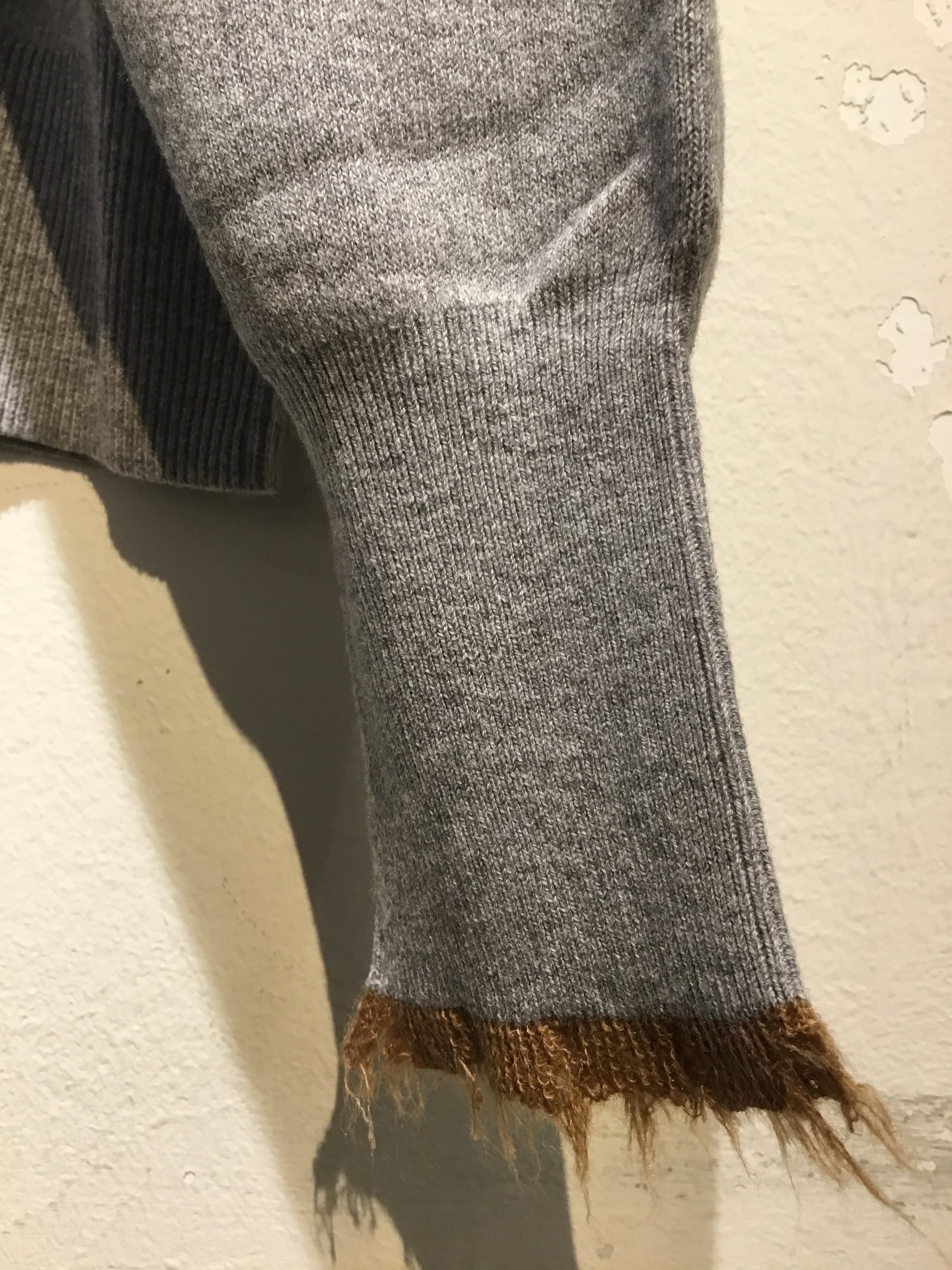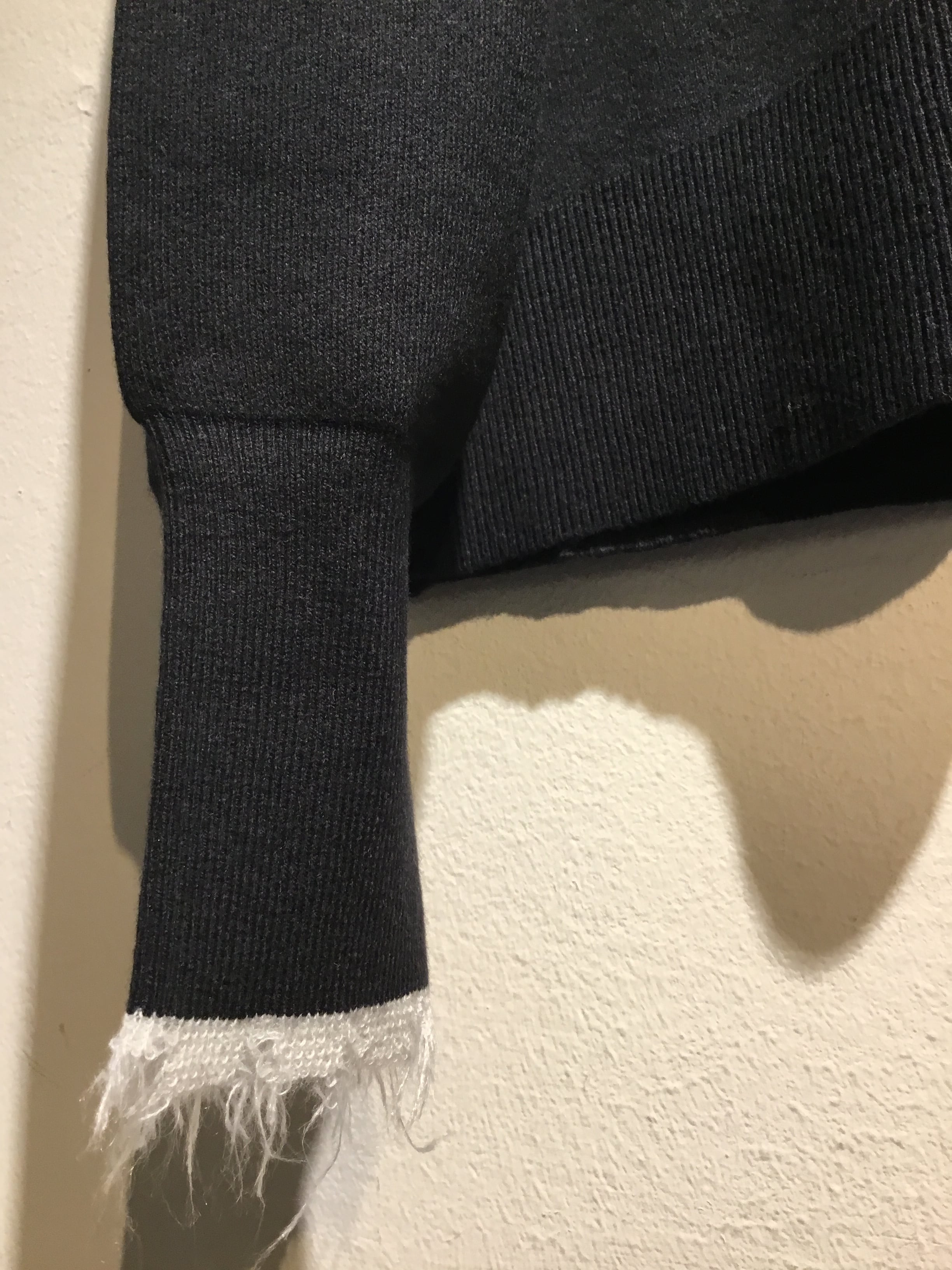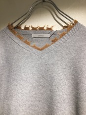 柔らかな肌触りが特徴のニットプルオーバーです。衿元とお袖の色が効いています。