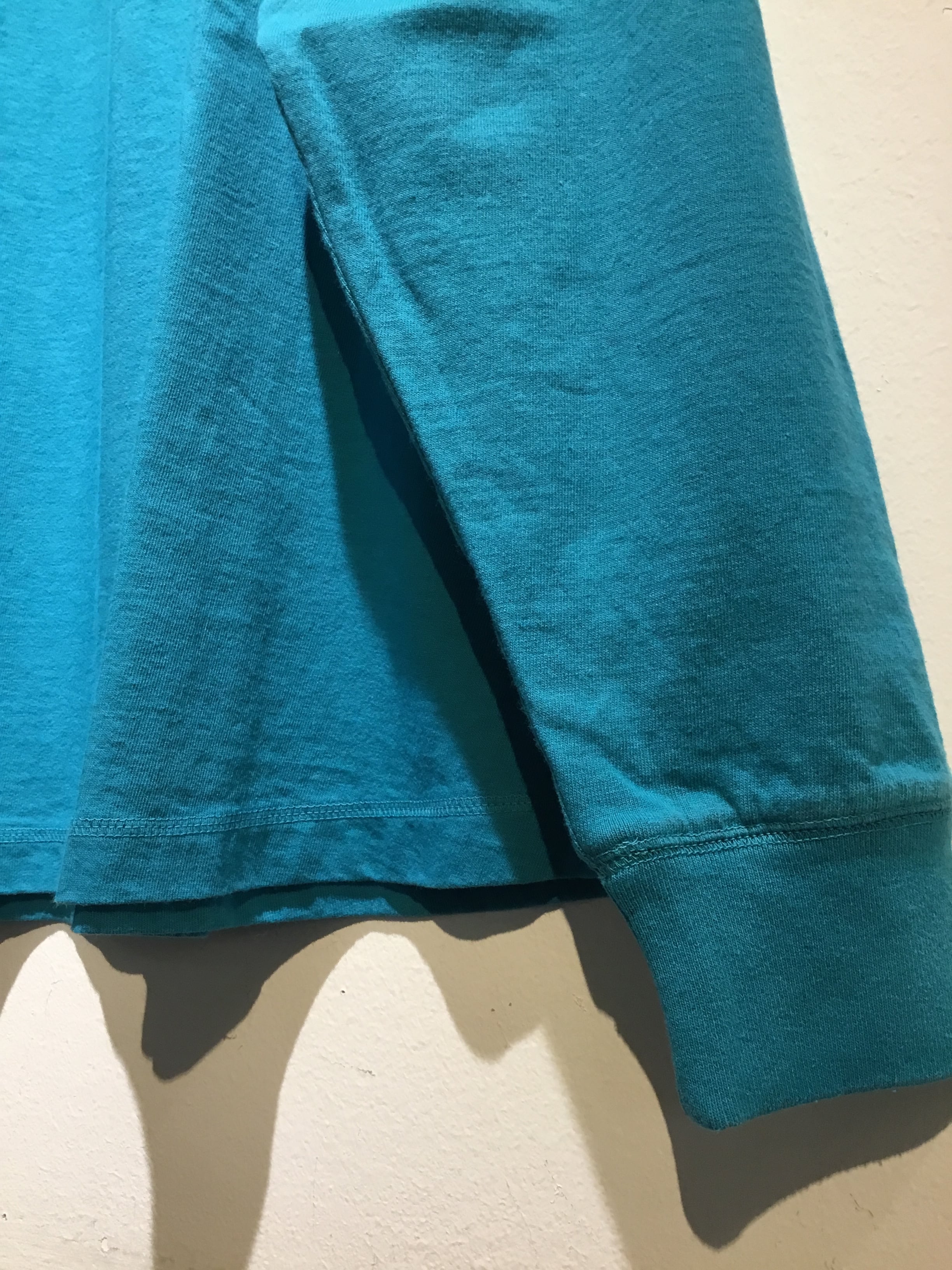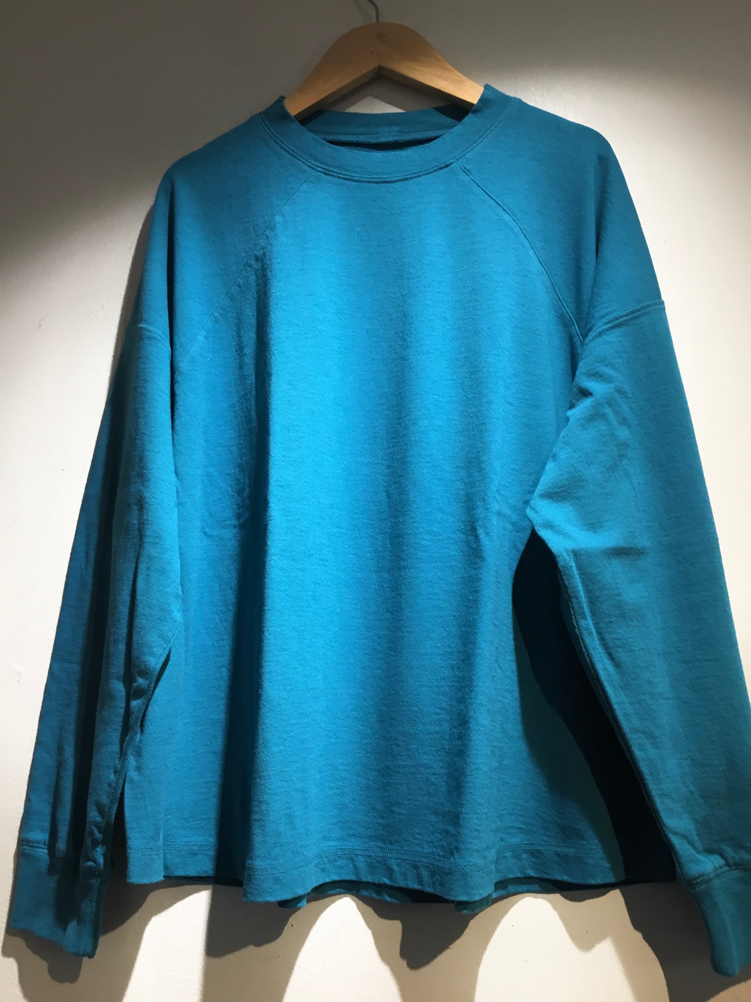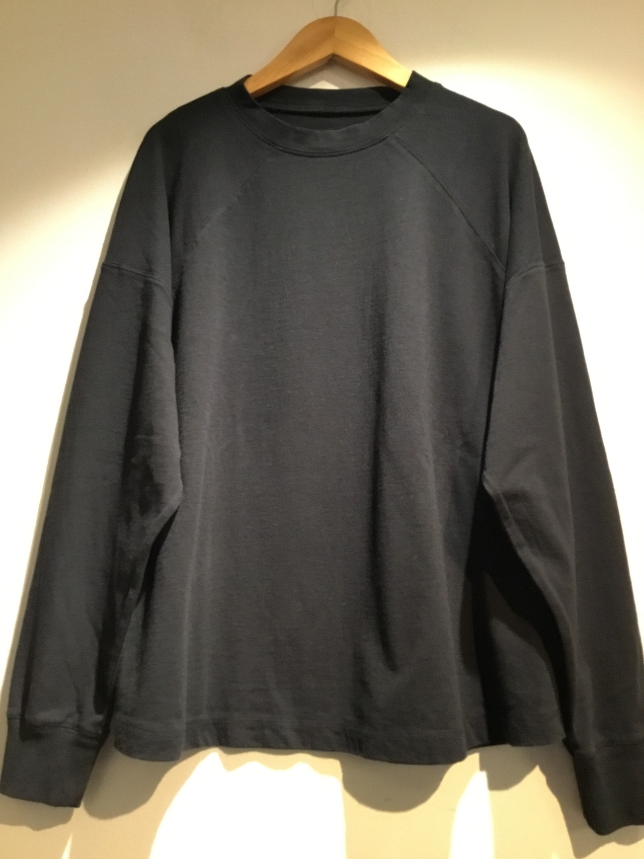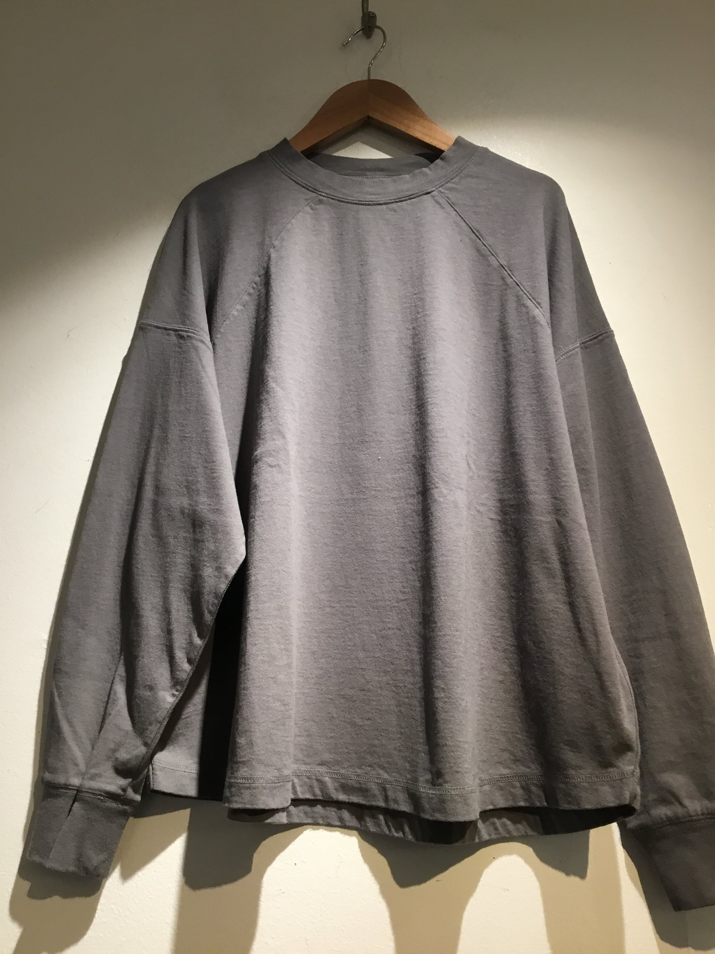 レディース laiterieより長袖プルオーバーが入荷いたしました。空気を含ませた糸でシャリ感のあるドライタッチの生地で作られています。一枚でも透けない程よい肉感とカジュアルな雰囲気です。