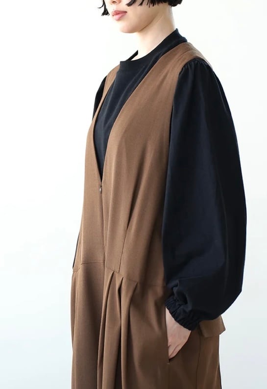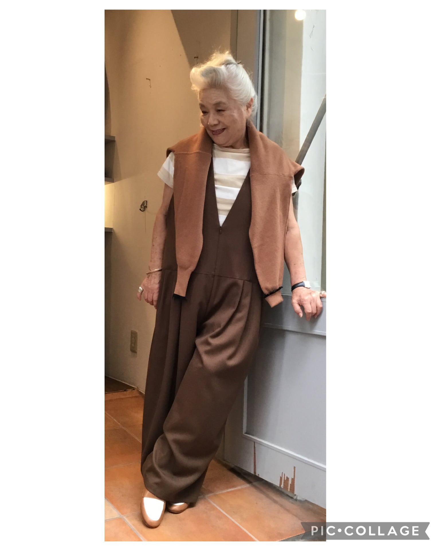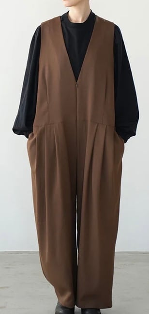 manonからフロント深めのVネックのサロペットが入荷しました。