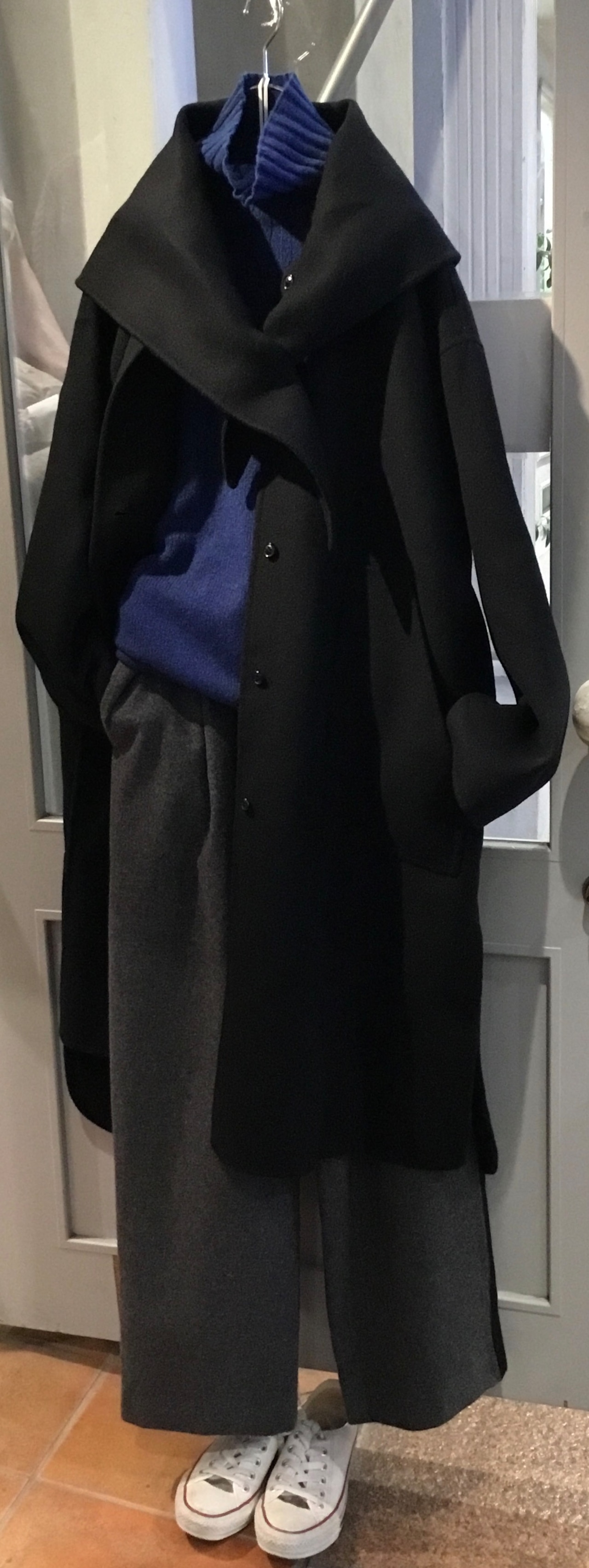 サイドにスリットが深めに入って 歩きやすく 一重仕立てなので軽く 暖かいコートです