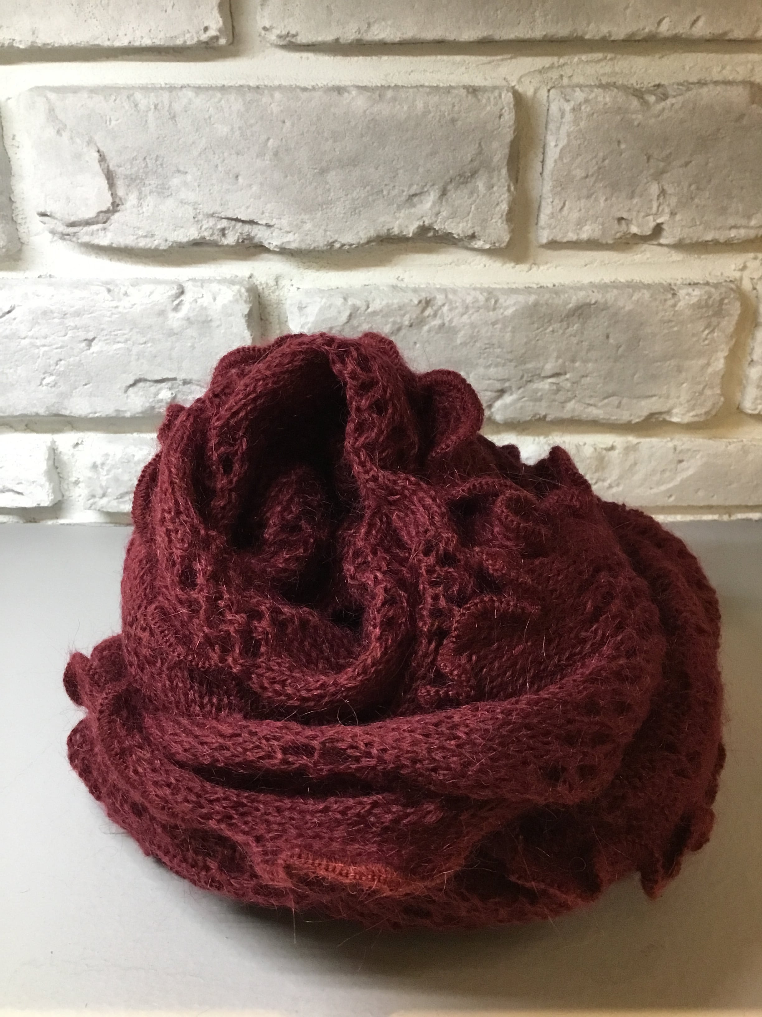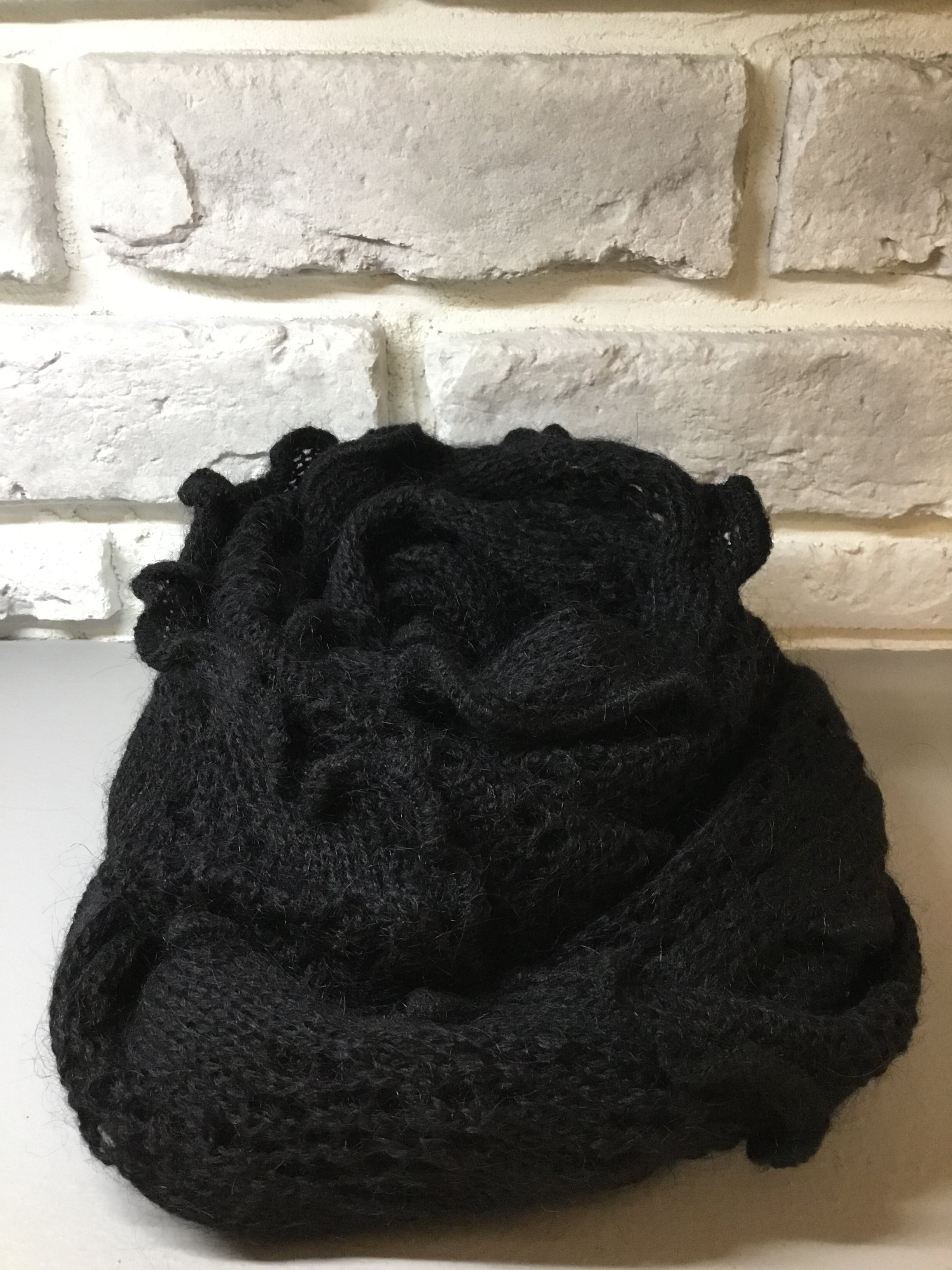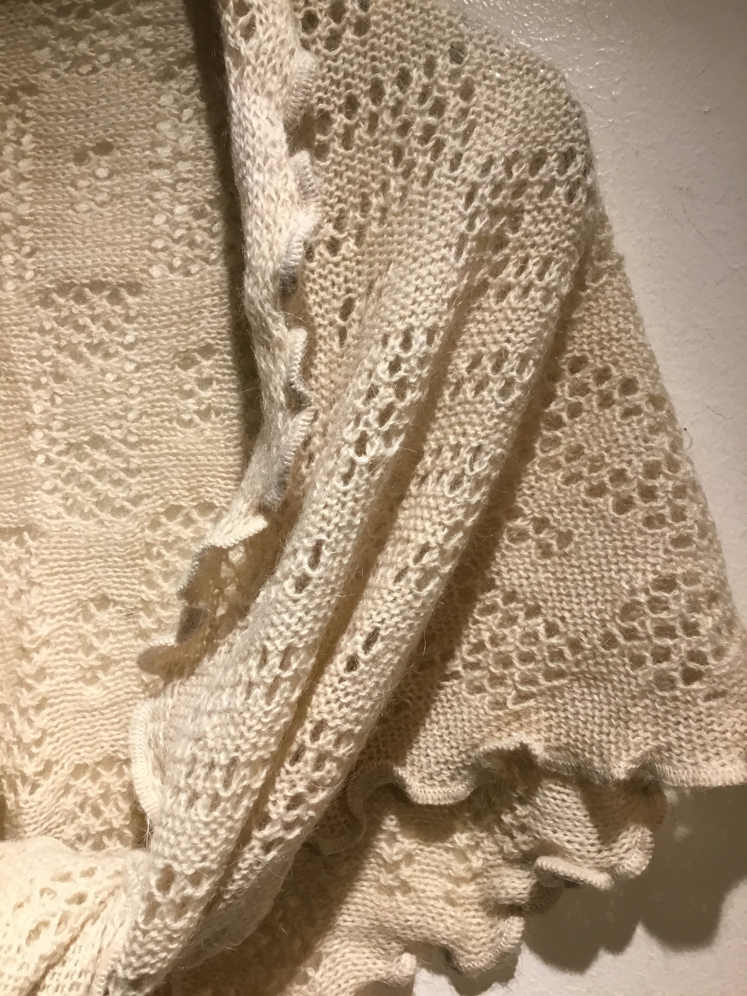 モヘアを混紡したニットのストールは温かみのあるほっこりとした風合いが魅力