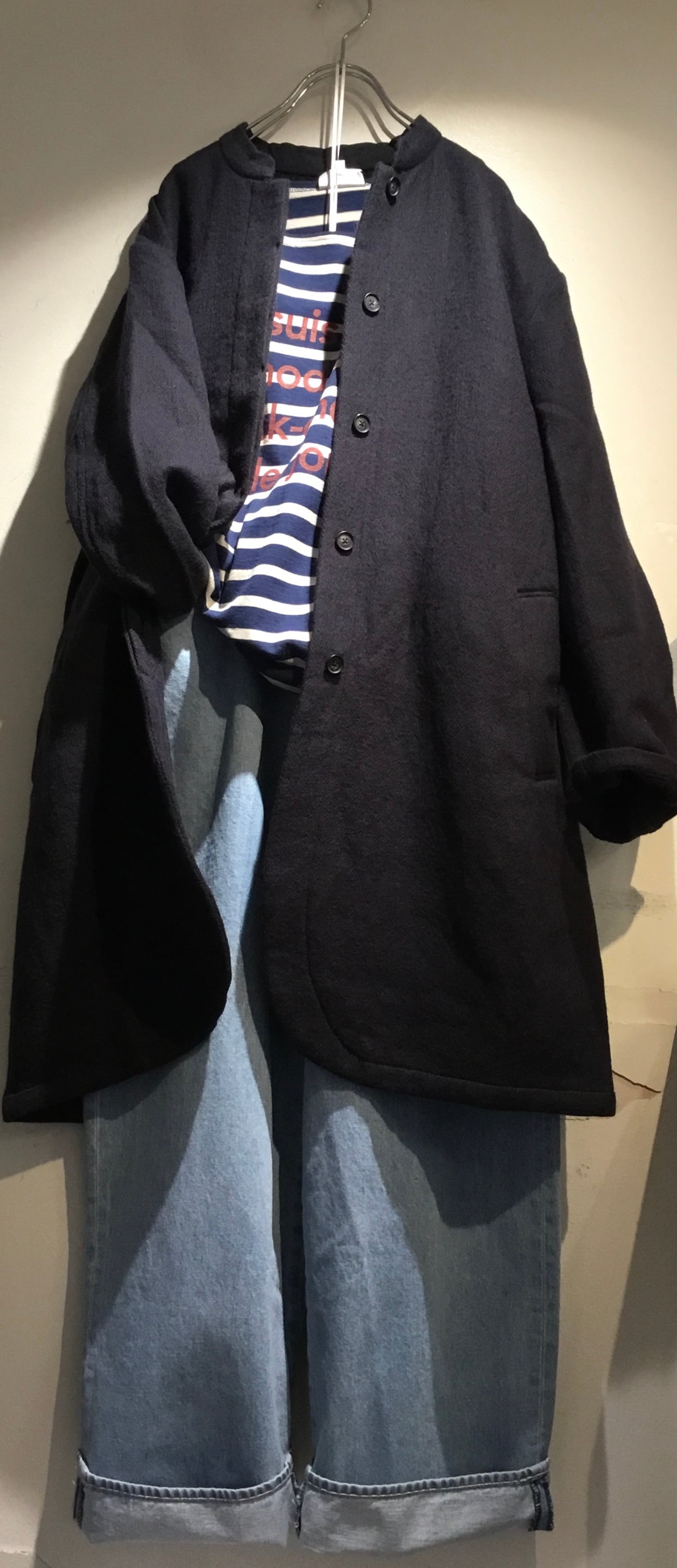 裏地のないライトな仕様は日常使いしやすいコートです