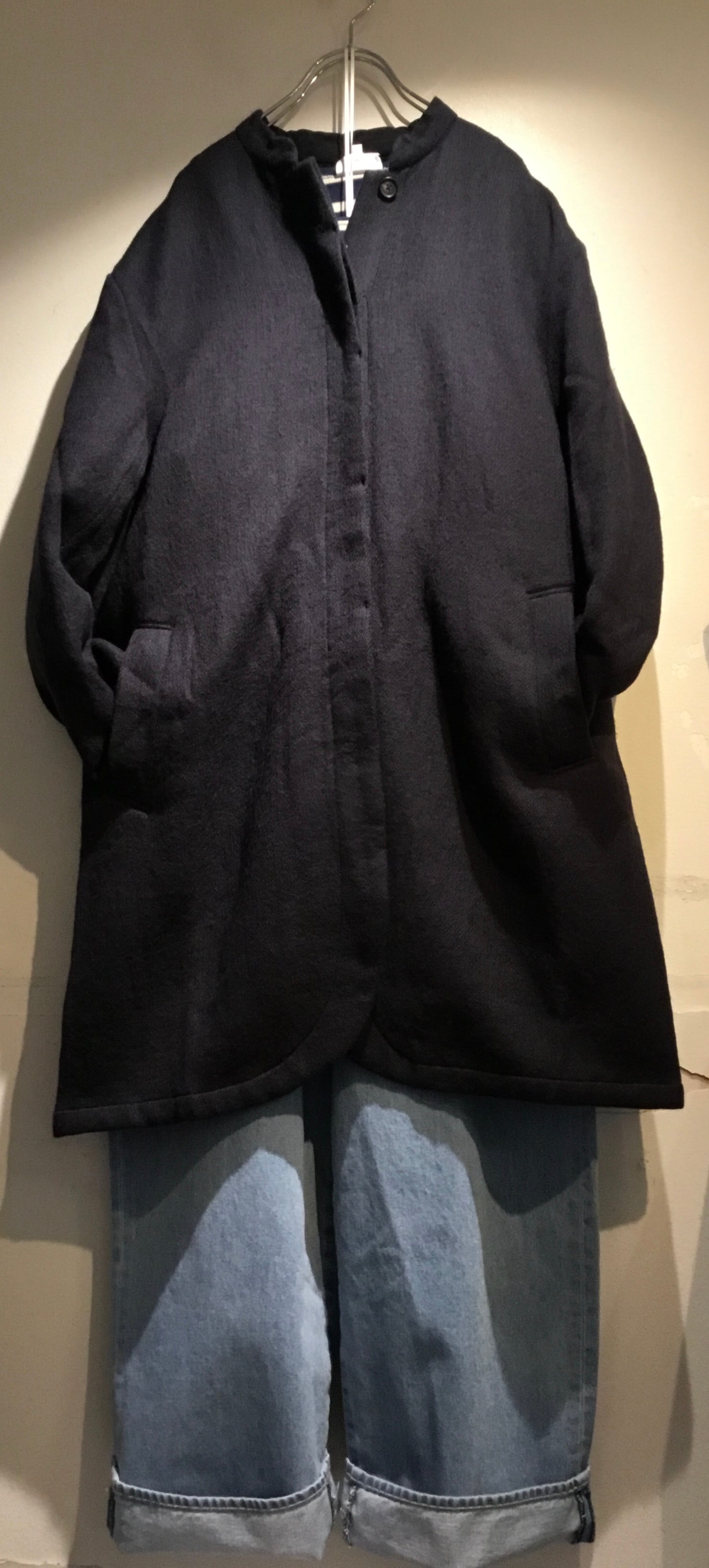 maison de soilからウールコットンのスタンドカラーのコートが入荷しました