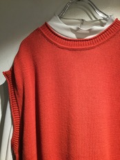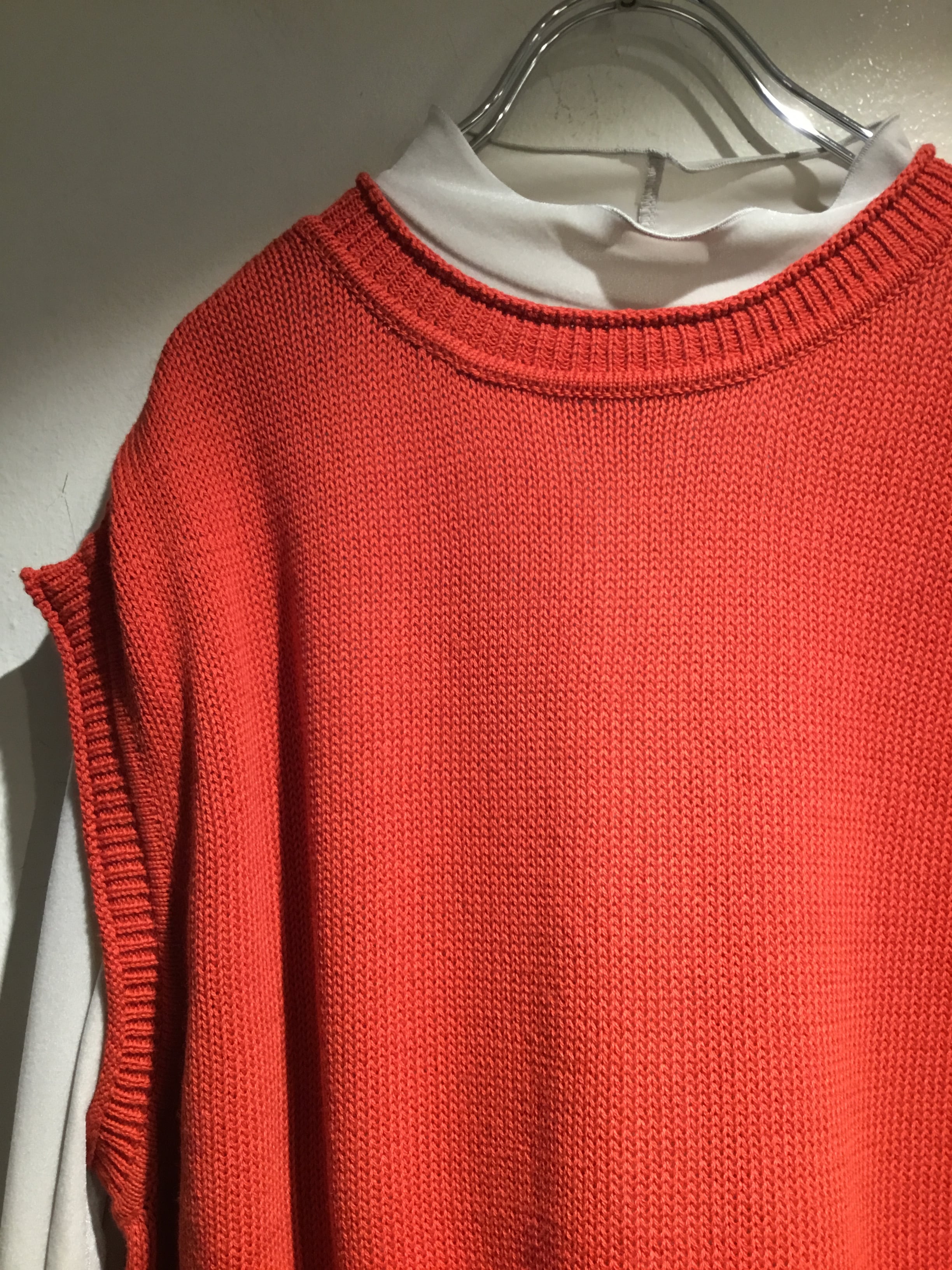 糸取り本数とゲージを工夫した軽くて若干のウォーム感のあるコットンニットのベストです