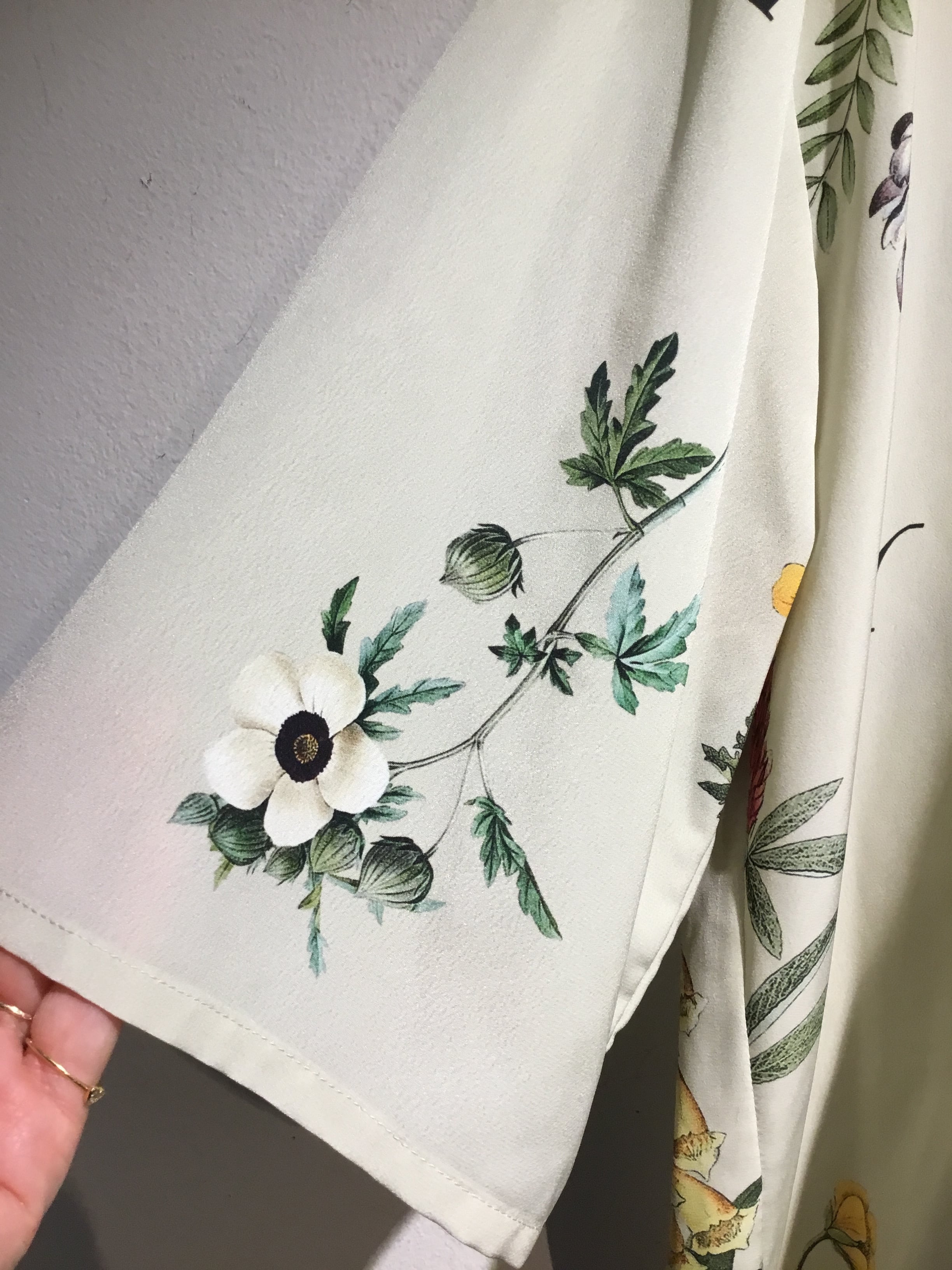 liyocaのオリジナルファブリックを使ったボタニカルプリントは 華やかで着る人の表情を明るく見せてくれます