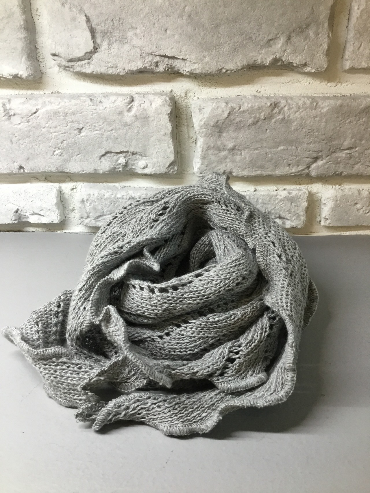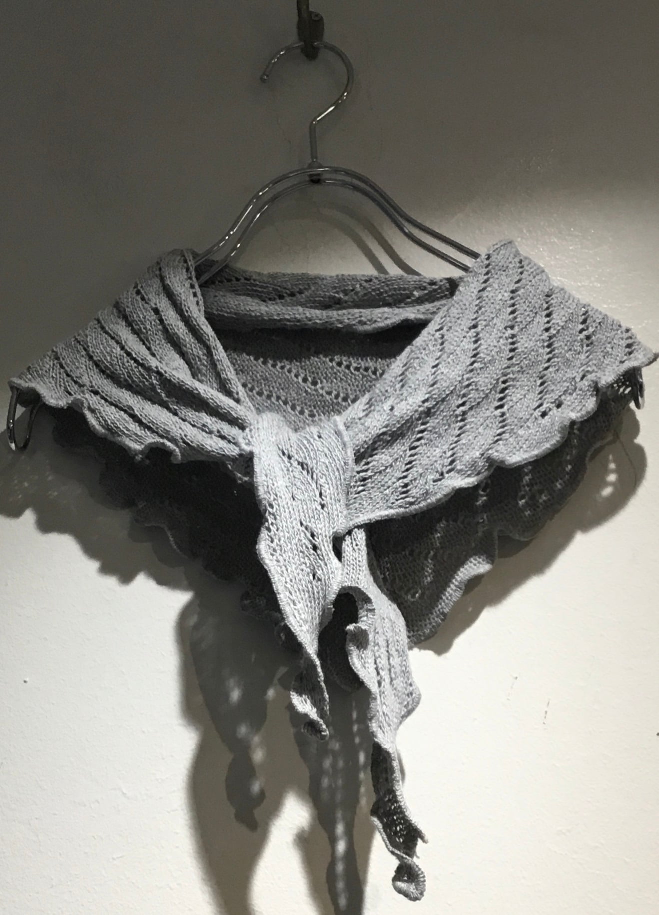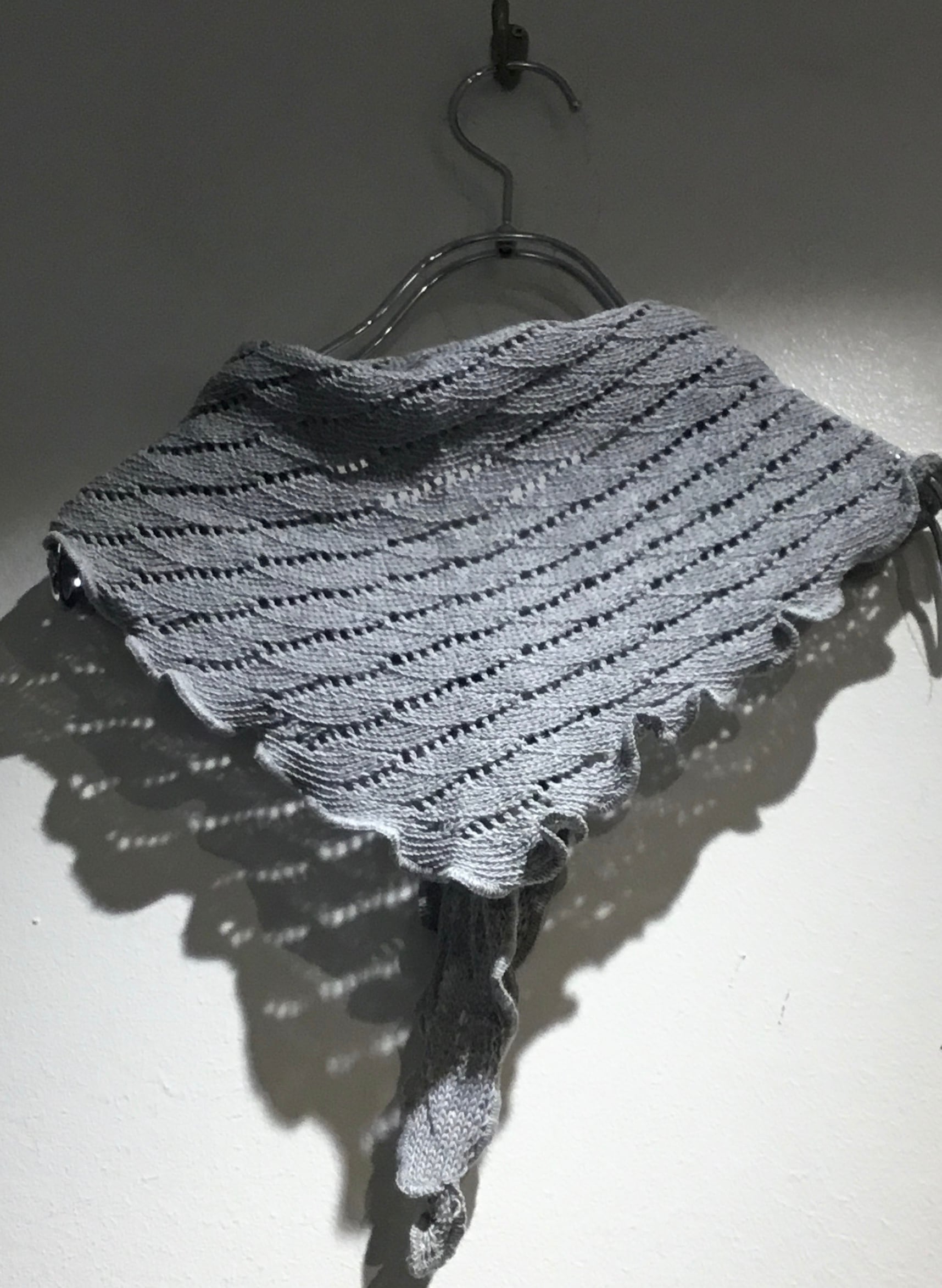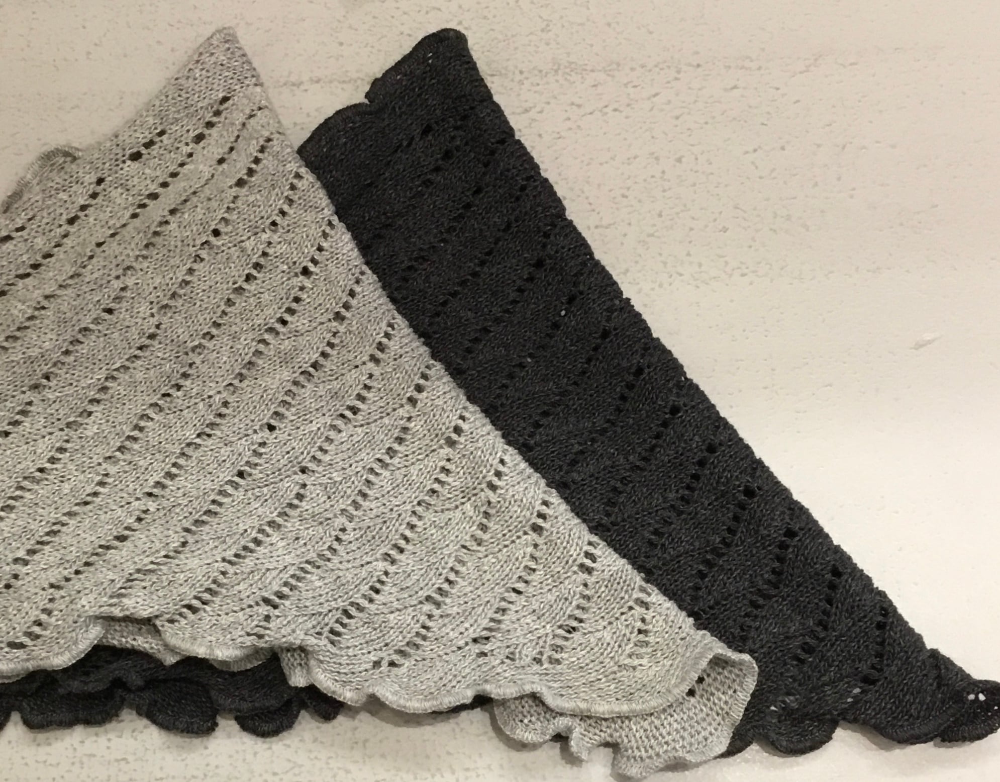 三角形のストールはボリューム感が抑えられて 収まりが良く巻きやすいのがポイントです