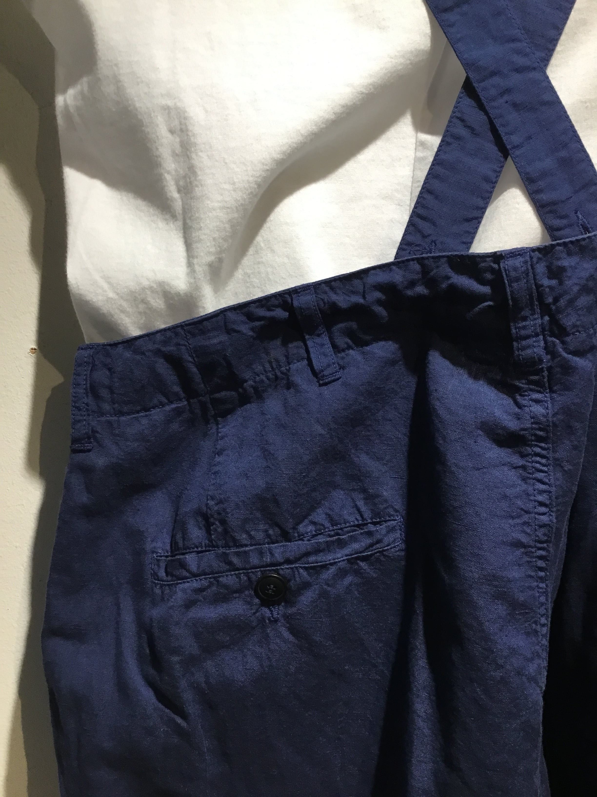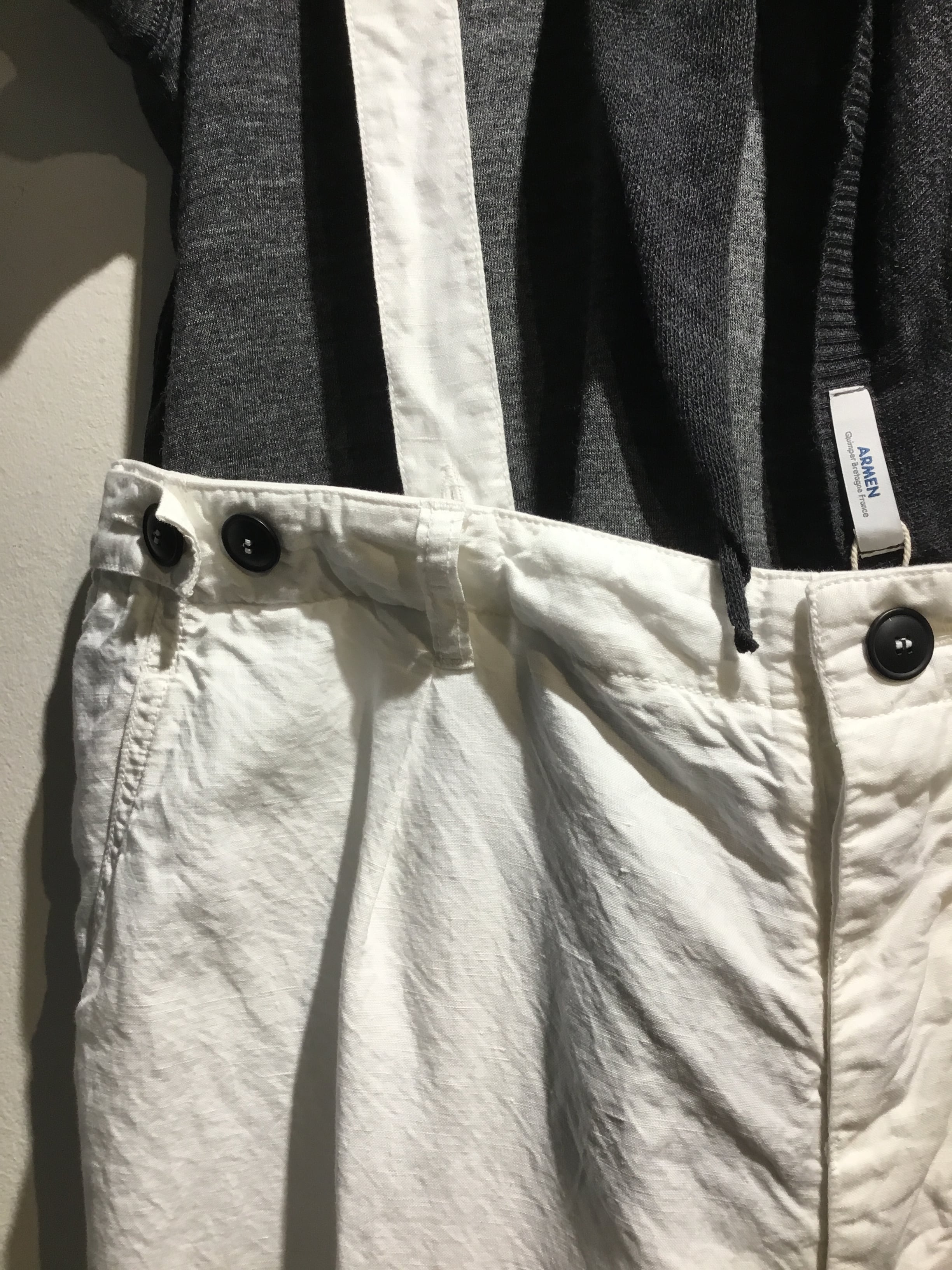 ARMENから柔らかいリネンコットン素材のサスペンダーパンツが入荷しました