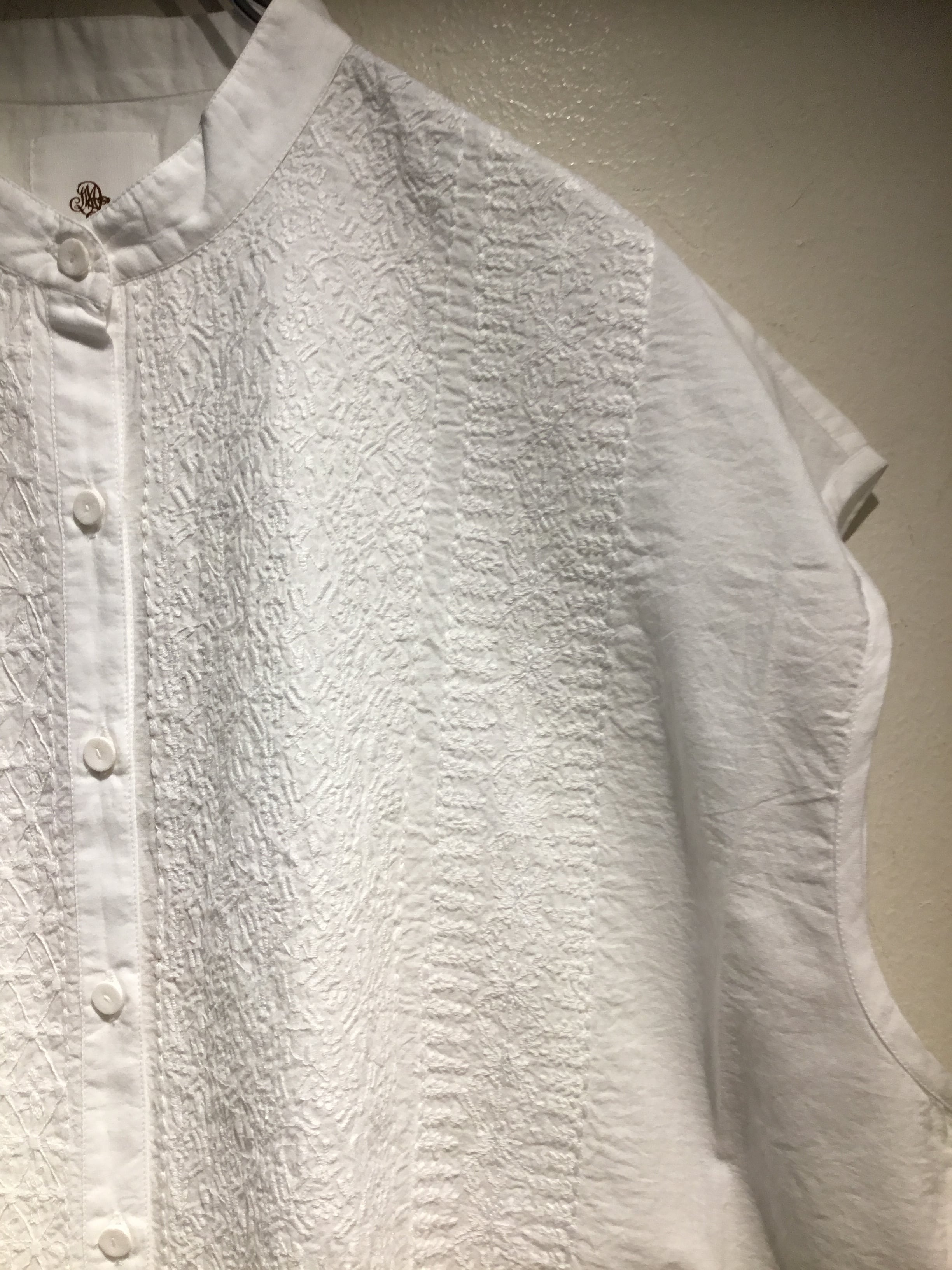maison de soilのフレンチスリーブ バンドカラー刺繍シャツが入荷しました