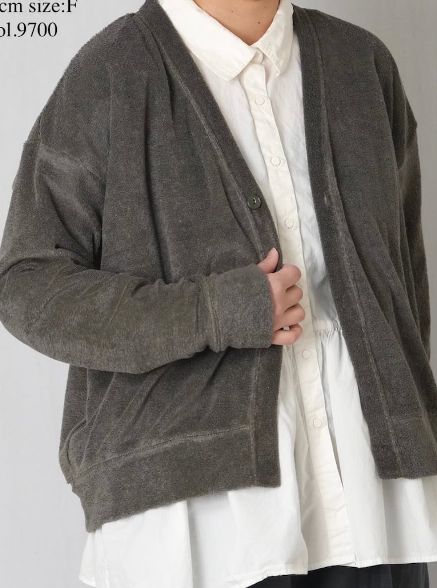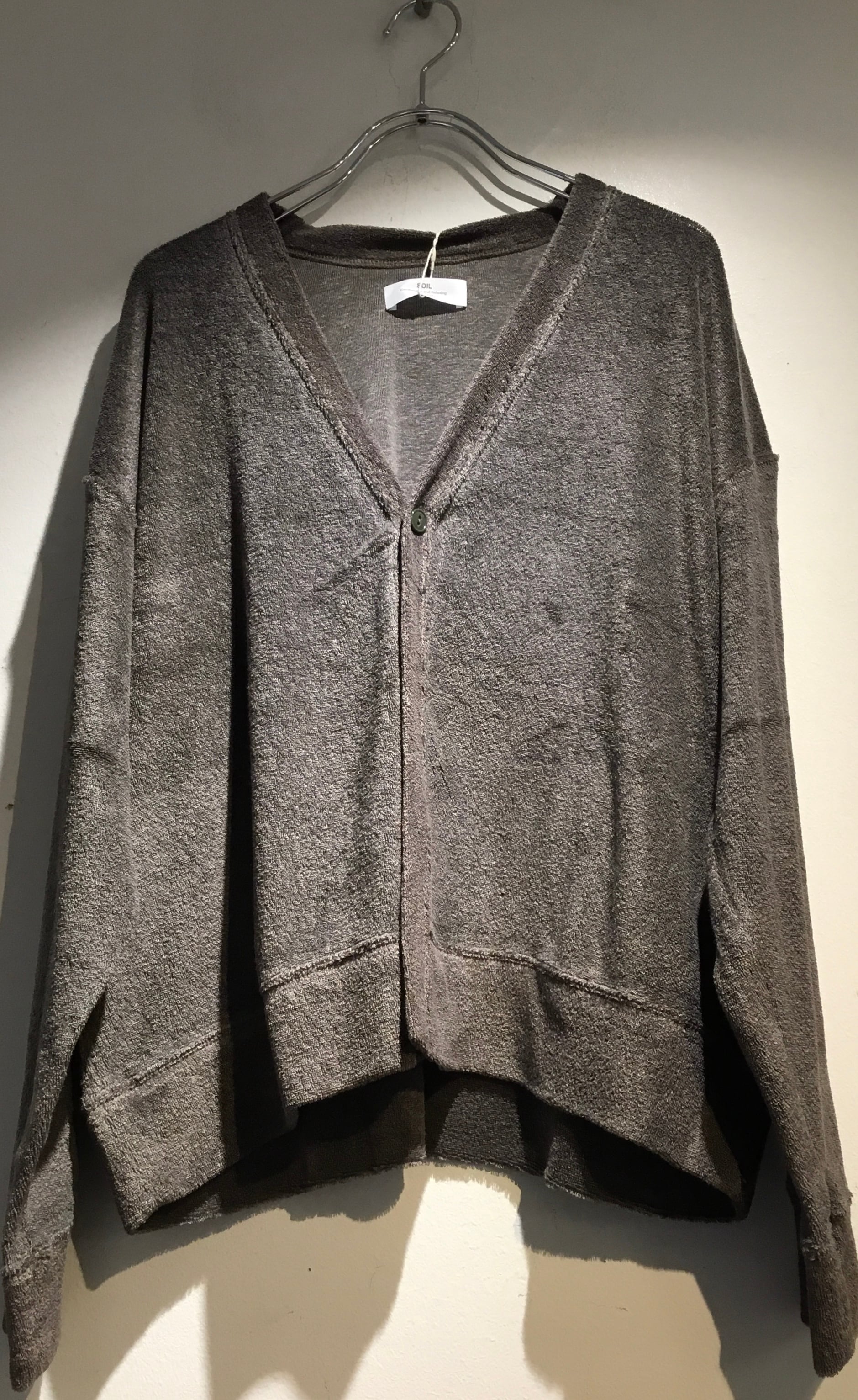 深めのVネックとドロップショルダーのバランスが絶妙なリラックス感 漂うデザインのカーディガンが入荷しました