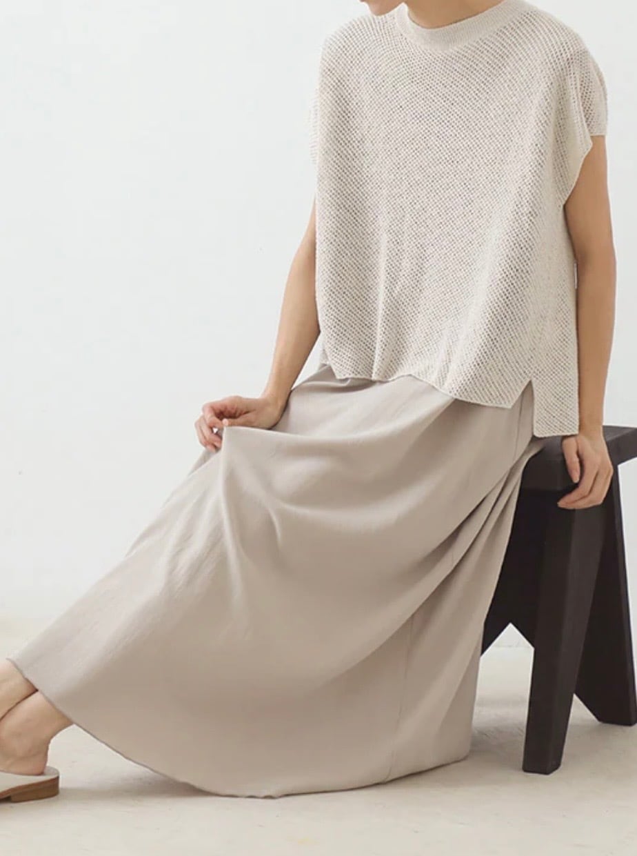 evam evaからシルク糸を使用したドライな質感のニットベストが入荷しました