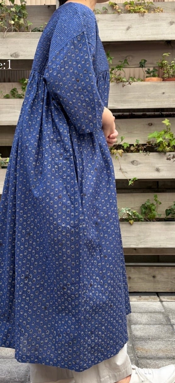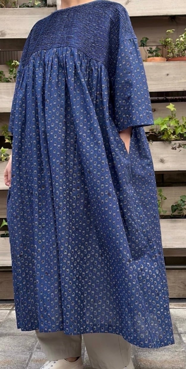 maison de soilの 繊細なブロックプリントが魅力のピンタックドレスが入荷しました