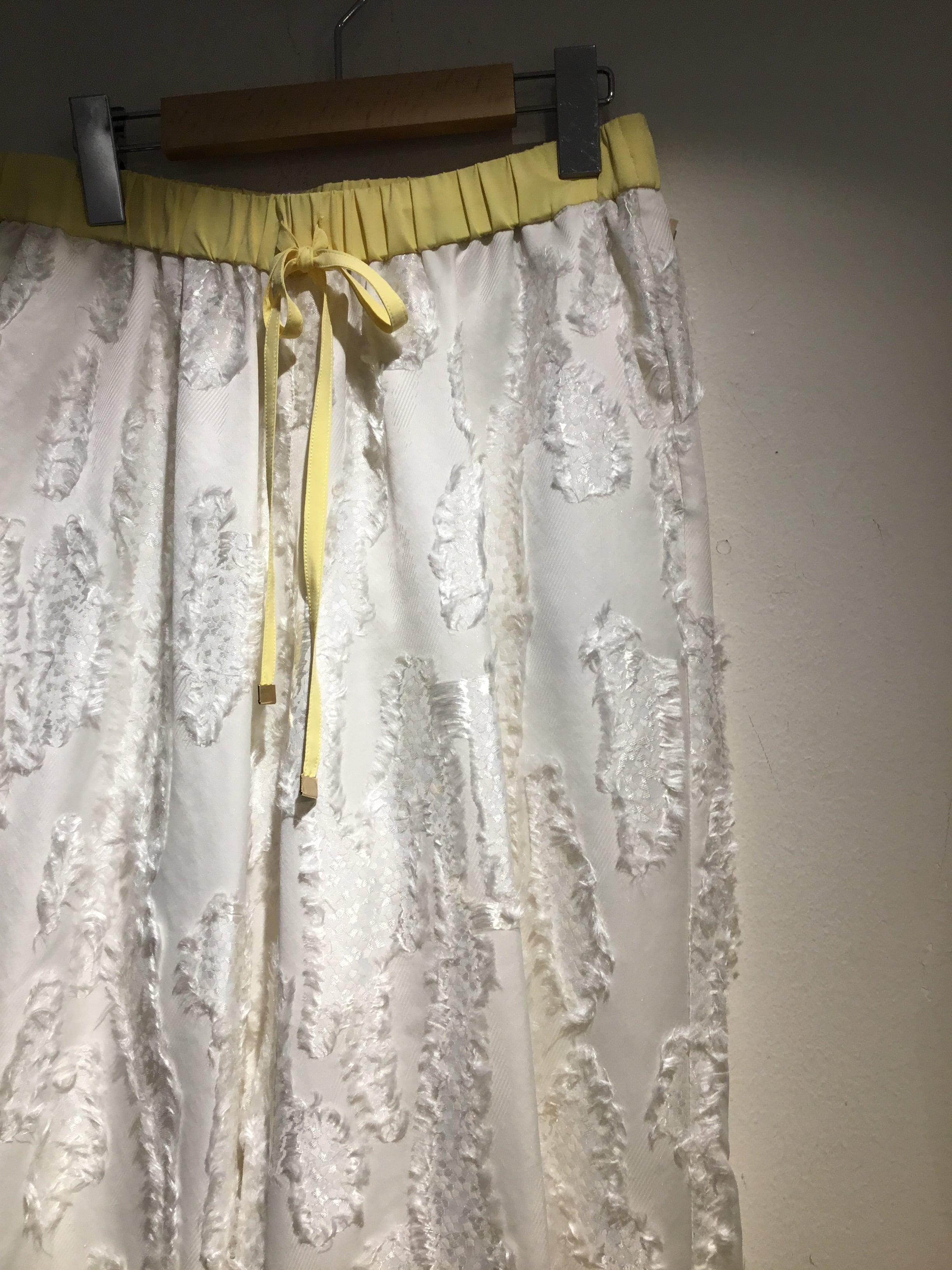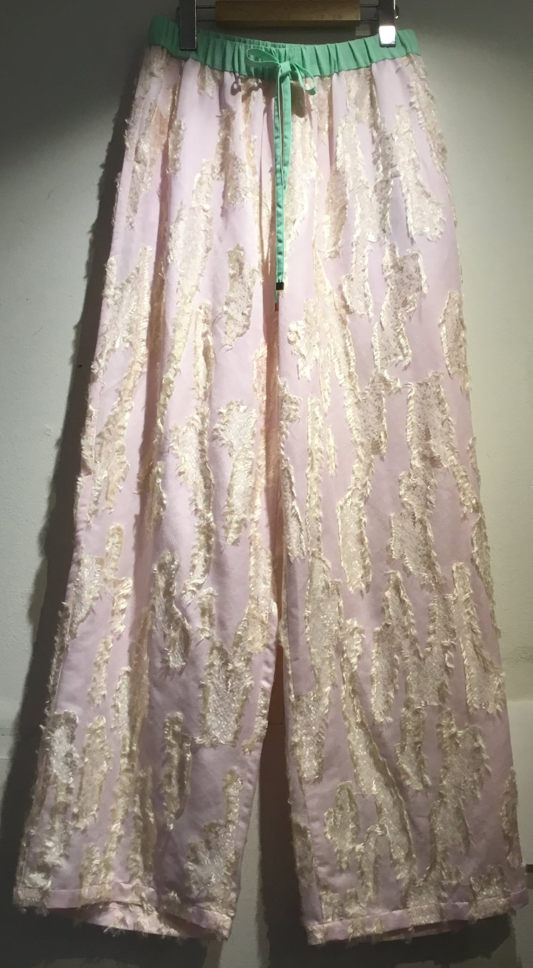 シャギーな素材感がとても綺麗で華やかなパンツです。