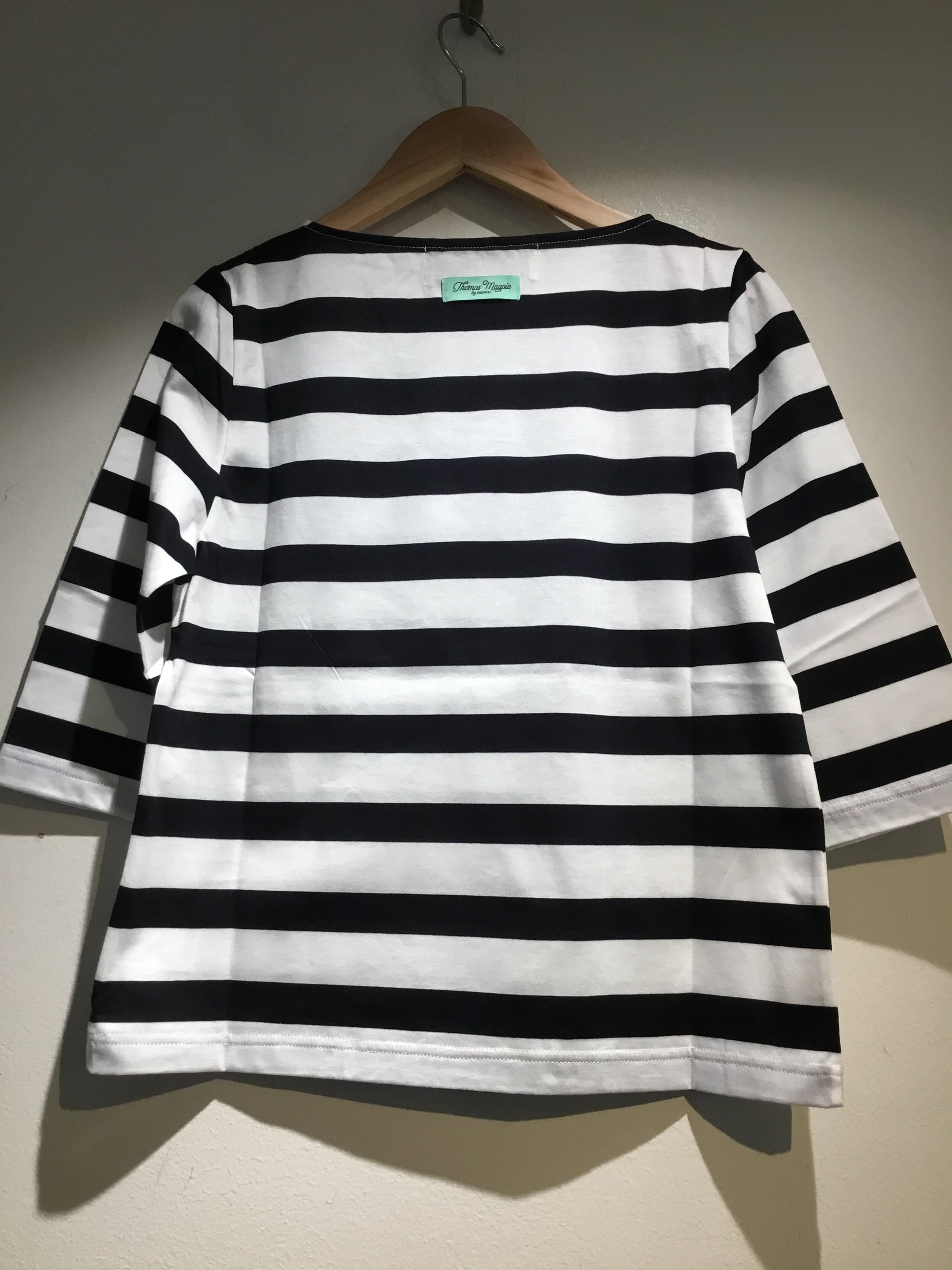 レディース Thomas Magpieよりボーダーカットソーが入荷致しました。スッキリとしたシルエットなので、今の時期はインナーとしても重宝します。色鮮やかなブルーボーダーが新鮮な色合いですね。