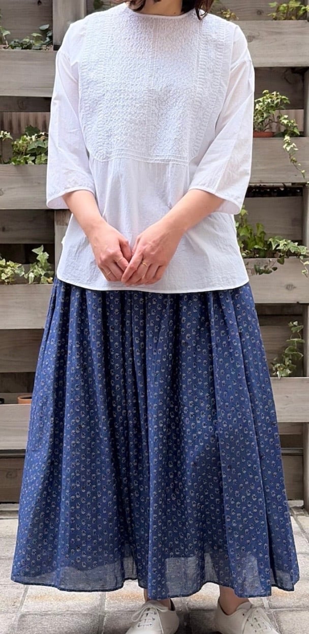 maison de soilから 雰囲気のあるブロックプリントが魅力のギャザースカートが入荷しました