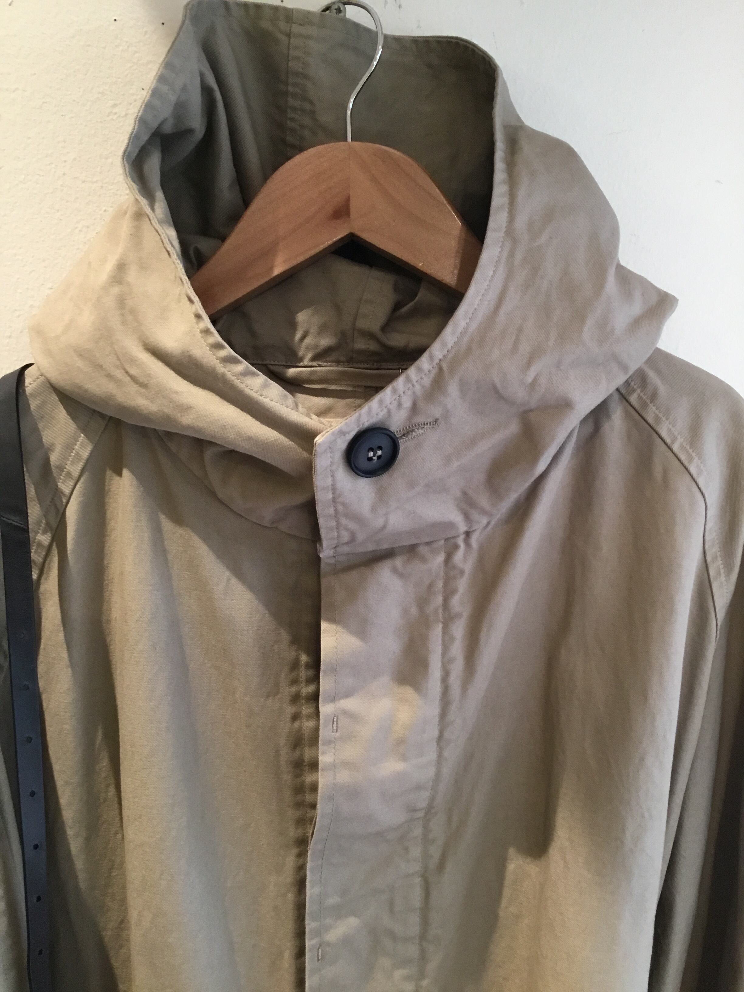 ハリのあるしっかりとしたコットンツイルを使用。製品染めを施す事で生じるムラ感がワークウェアの雰囲気を感じさせてくれます。