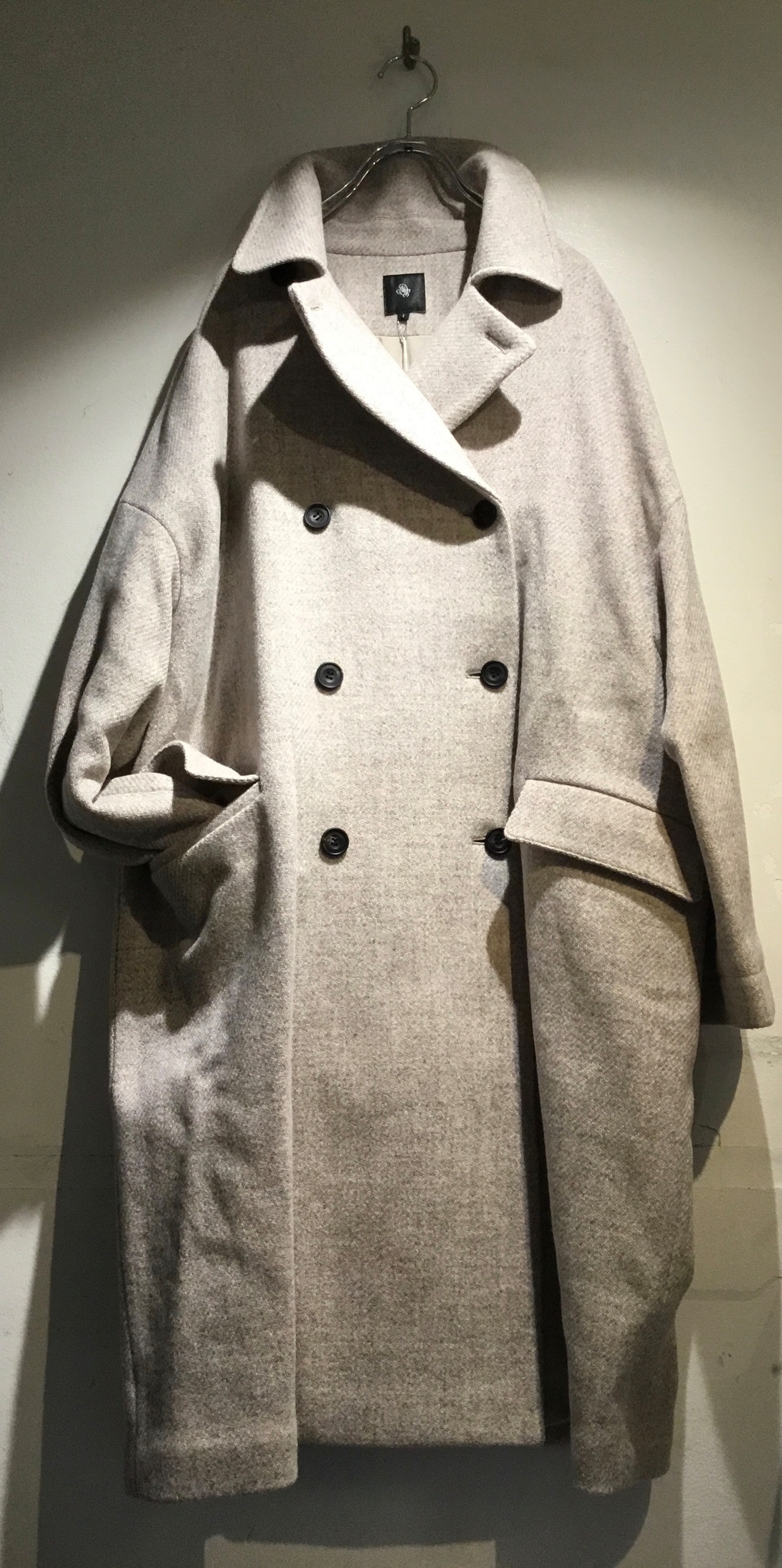 maison de soil からダブルブレストコートが入荷しました。ブリティッシュウールを使用して 柔らかで上質な質感が エレガントな雰囲気の大人のコートです。